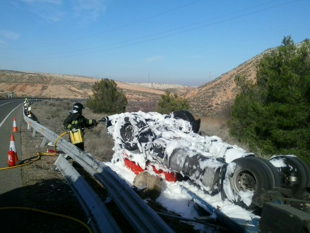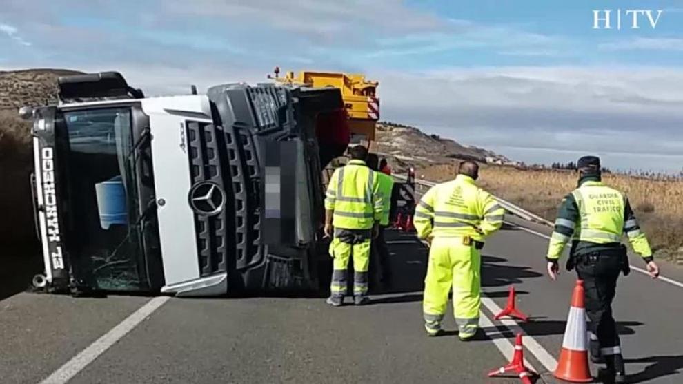Vuelco de un camión en Quinto de Ebro Imágenes