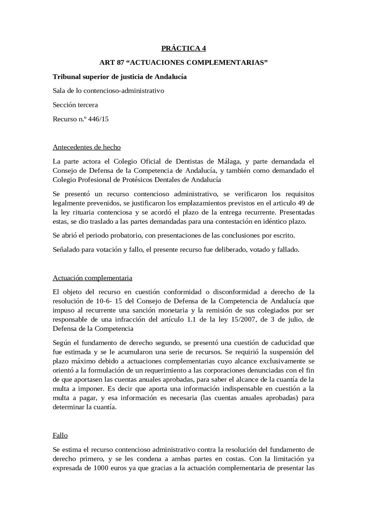 PRÁCTICA DE ACTUACIONES COMPLEMENTARIAS Docsity