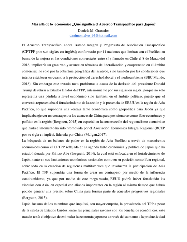 (DOC) Más allá de lo económico ¿Qué significa el Acuerdo Transpacífico para Japón Daniela M