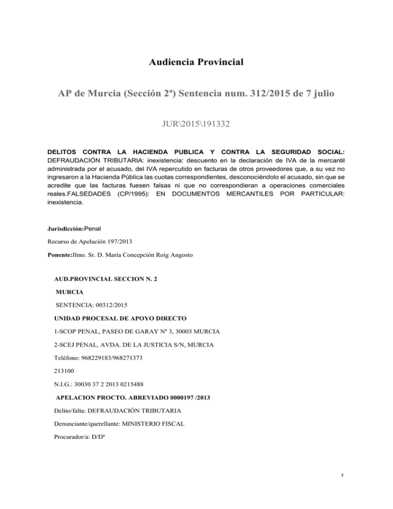 Audiencia Provincial AP de Murcia (Sección 2ª) Sentencia num. 312