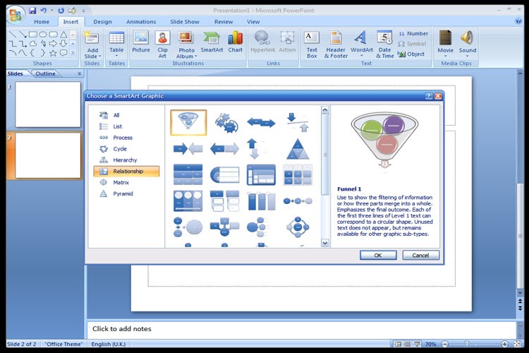 1. Inicio. La pestaña Inicio incluye las características Cortar y Pegar, las opciones Fuente y Párrafo, y lo que necesita agregar para organizar las diapositivas. 2. Insertar. Haga clic en Insertar para agregar algo a una diapositiva. Esto incluye imágenes, formas, gráficos, vínculos, cuadros de texto, vídeo, etc. 3. Diseño.