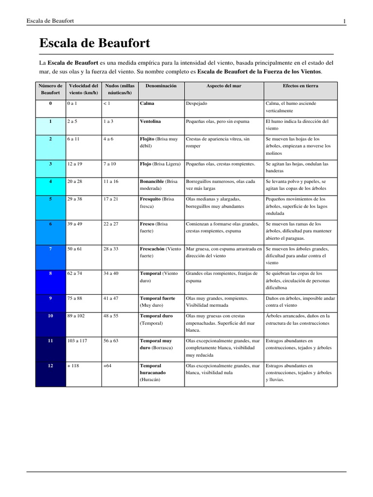 Escala de Beaufort de Fuerza de Vientos.pdf Fenómenos de la tierra Herida Prueba gratuita