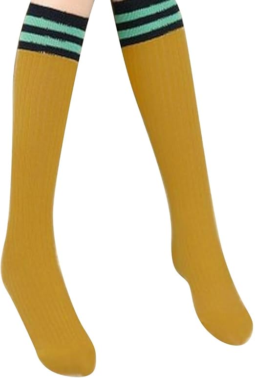Calcetines de algodón con rayas en la rodilla, 1 par, Amarillo, Talla única