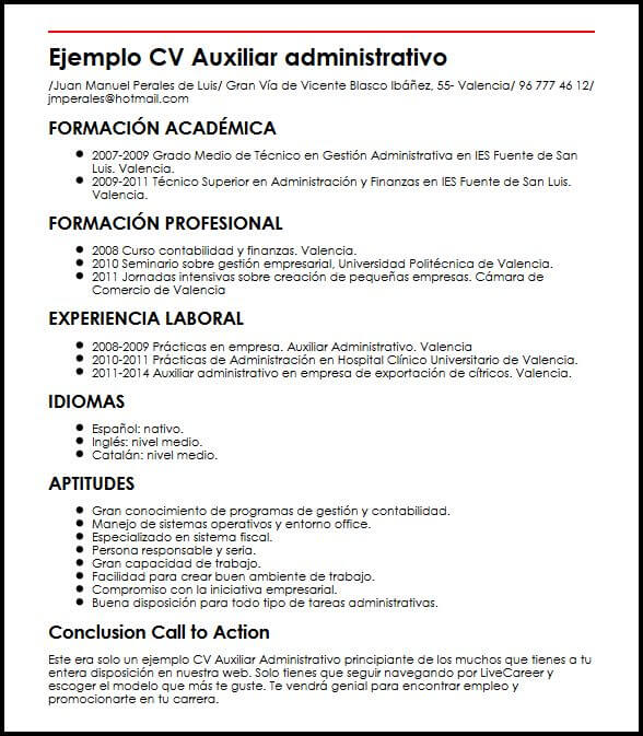 Ejemplos De Cv Administrativo