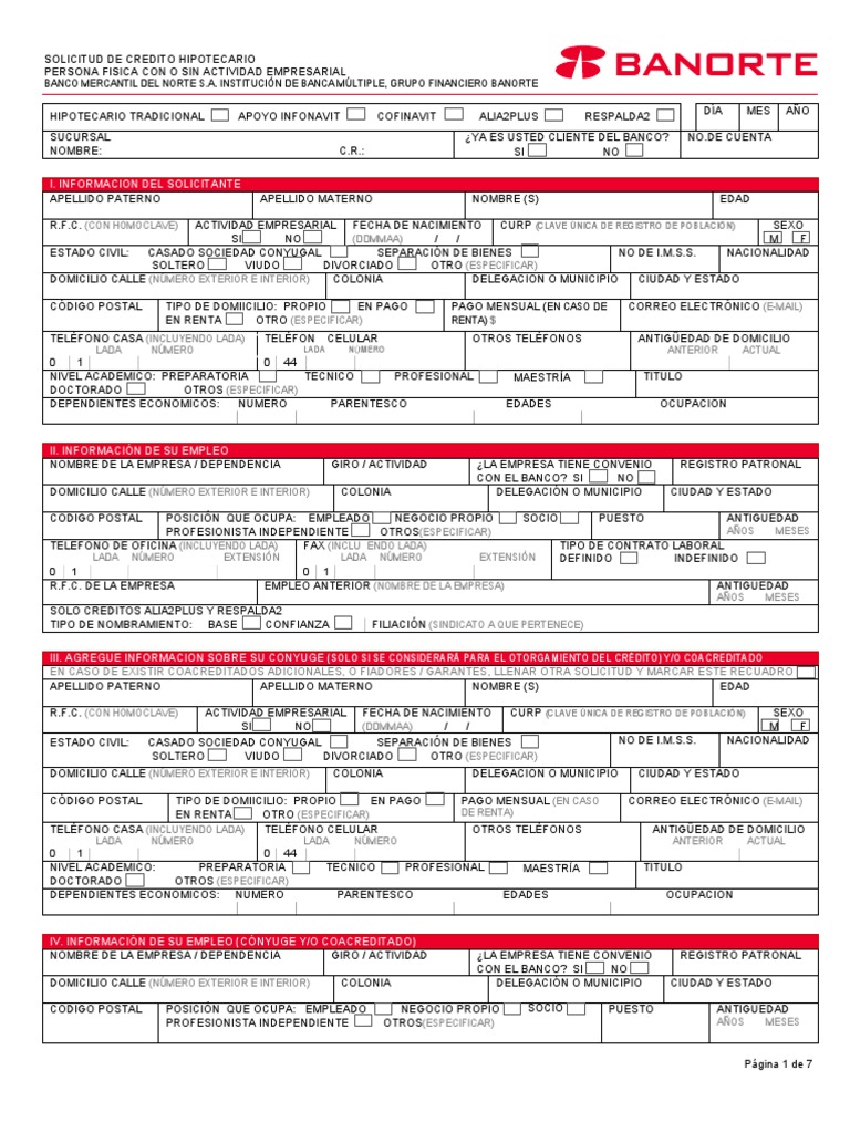 SolicitudCreditoHipotecario BANORTE PDF Bancos Bancario