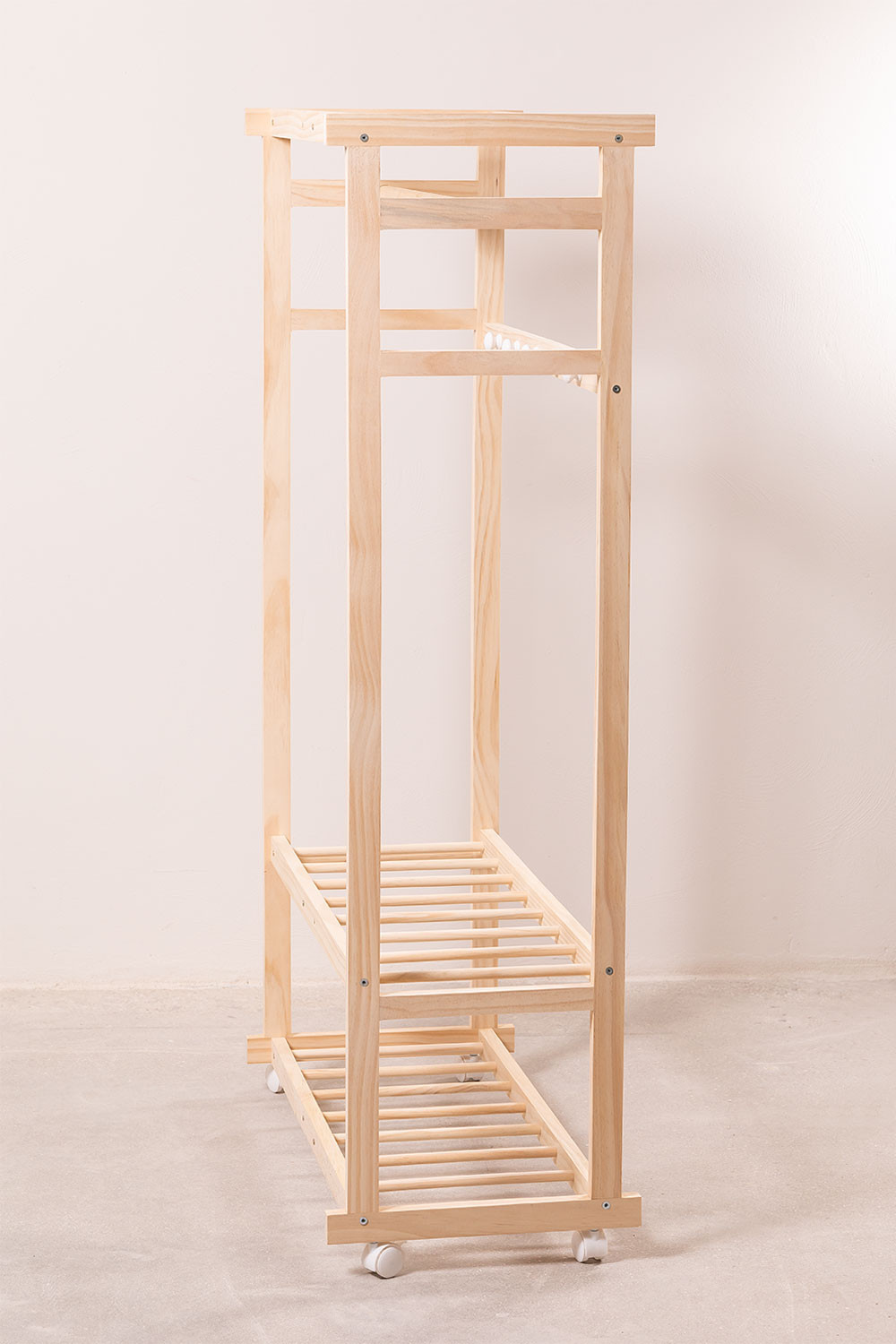 Perchero con Ruedas de Madera Seri. 3 Estantes. Rústico — Blenom