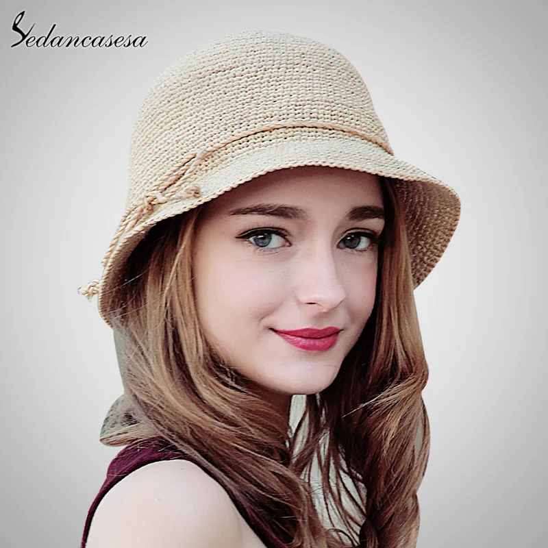 Sedancasesa moda mujeres paja rafia ganchillo sombrero sombreros verano
