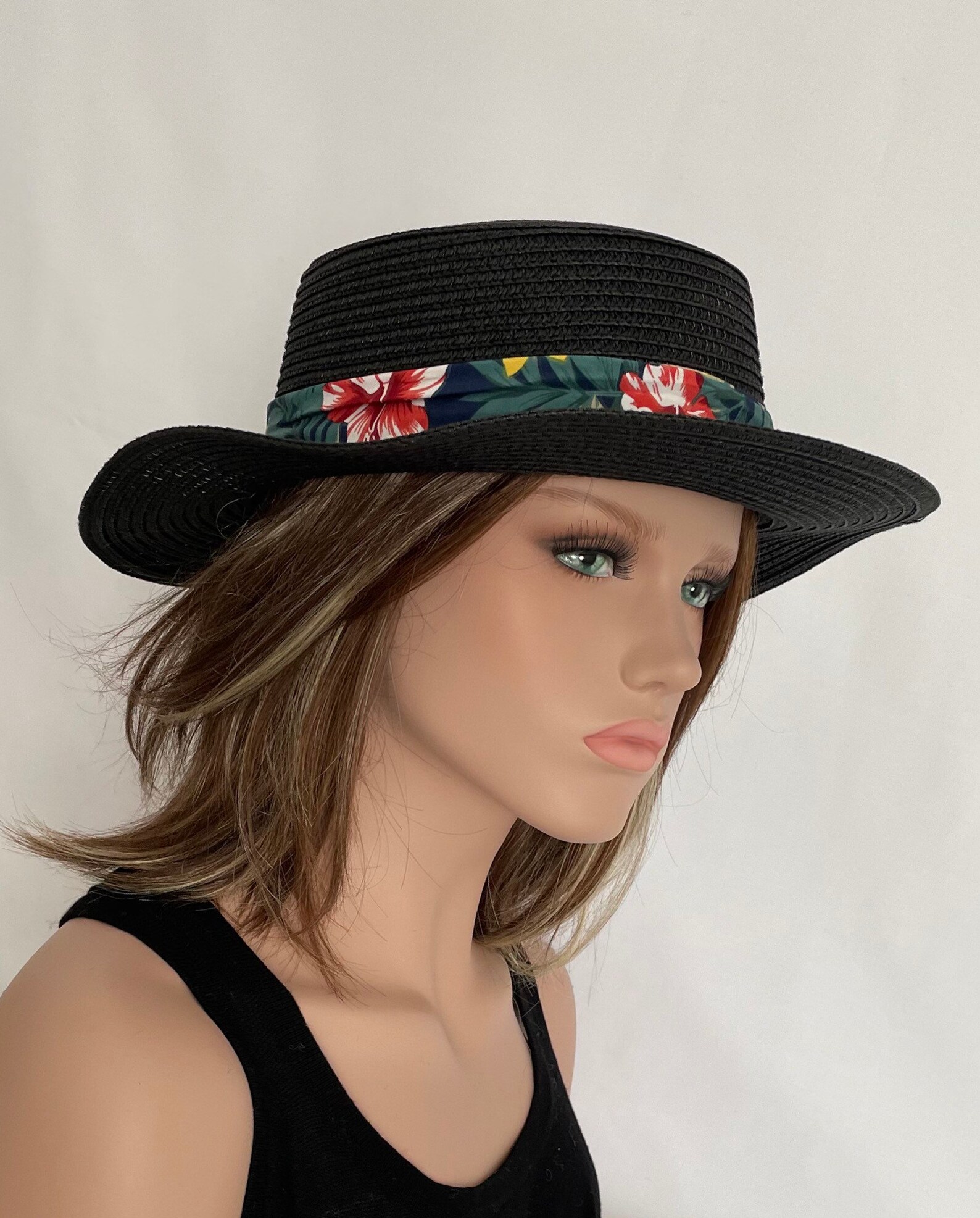 Sombrero de canotier de mujer de verano Calvi negro. Sombreros Etsy