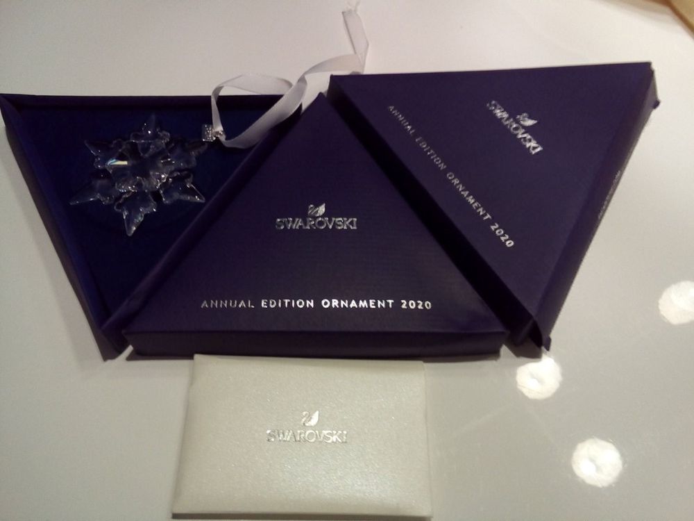 About this item. Swarovski Annual Edition Ornament 2020 is an exquisitely designed ornament. The annual ornament hangs on a white satin ribbon and displays beautifully on the tree or window. Not a toy. Package Dimensions: 3.175 L x 16.383 H x 13.335 W (centimeters) Mounting type: Hanging.