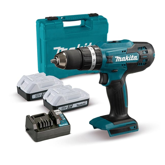 Taladro percutor a batería RYOBI de 18 v 2 baterias de 2Ah y 5 Ah. Taladro percutor Universal Impact BOSCH 18v con 2 baterías 2Ah + set de 51 acce. Taladro percutor sin cable de 1,5 Ah con funciones de atornillar y desatornillar. Posee 2 velocidades, torque máximo de 42 Nm y 1400 rpm. Mandril autoapriete.